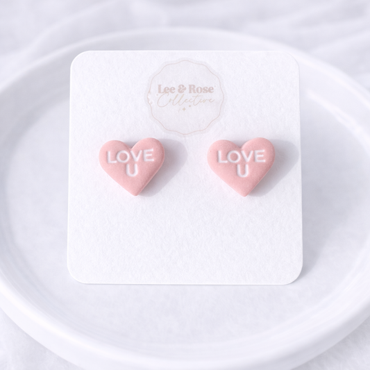 Conversation Hearts Studs - Polymer Clay Earrings