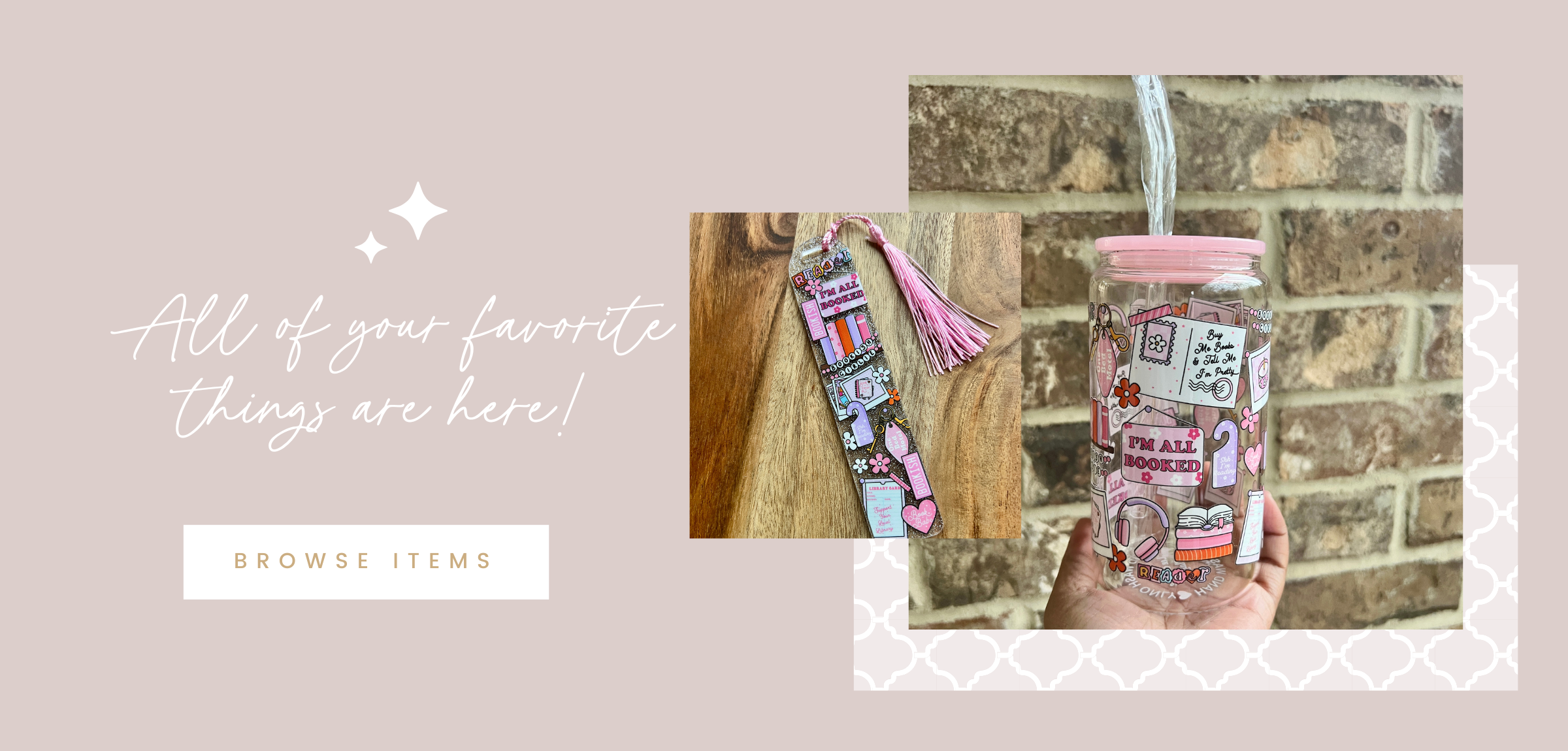 Decorated Cups, Bookmarks, Badge Reels Scrunchie Lanyards, and more!